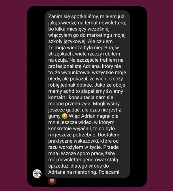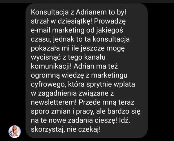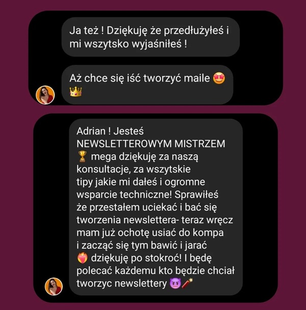 Dzięki moim strategiom, automatyzacjom i kampaniom sprzedażowym z e-maili wygenerowano już ponad 1,5 miliona złotych.